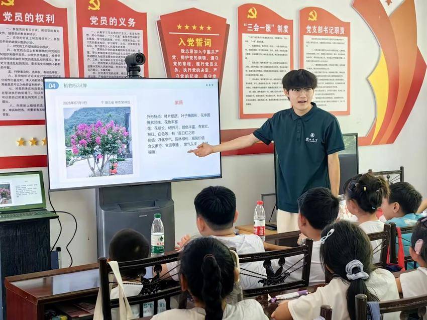 湖北日报客户端讯(通讯员房泽洋 张子松 黄景 袁燚)为促进山区儿童全面发展,助力基层社会治理,7月15日,william威廉亚洲“润雨生花”志愿服务队在神农架新华镇成功开展了一场以“制作植物标识牌”为主题的趣味生物课堂,通过知识科普与实地观察相结合的形式,带领30名林区儿童开启植物探索之旅。课堂上,志愿者通过课件展示与互动讲解,用通俗易懂的语言为孩子们介绍植物的生长习性、形态特征及生态作用,从身边常见的花草树木到林...