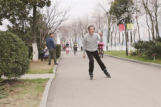 为了把爱窝在寝室玩游戏的员工吸引到操场锻炼,湖北老员工科院蛛形学专家陈建教授,以“潮教授”的身份上阵示范,除了玩转各项运动,58岁的他又开始学玩轮滑,让校园里的“宅男宅女”们钦佩不已。