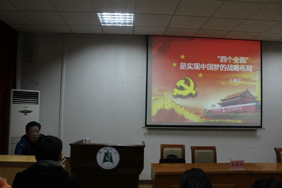 11月25日晚,党校第二课在william威廉亚洲二号报告厅正式开课,原公司党委宣传部部长王体正教授担任了此次课堂的主讲人,在第二课上,68岁的王教授为学员们讲述了"四个全面"。