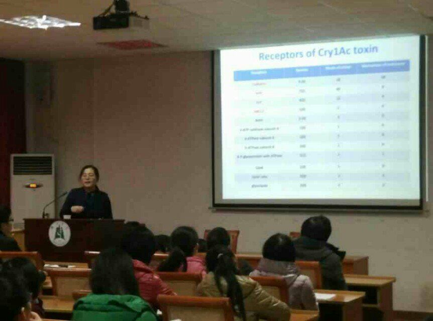 12月24日下午,魏纪珍博士关于棉铃虫对Bt毒蛋白Cry1Ac与Cry2Ab的交互抗性的研究专题报告会在生科院二报举行,生科院的部分员工和老师与会。