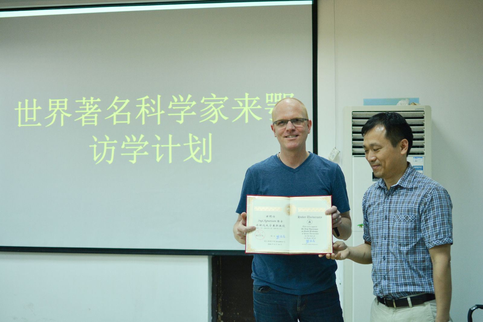 受省教育厅“世界著名科学家来鄂讲学计划”资助,美国佛蒙特大学Ingi Agnarsson副教授一行于6月16日-22日来公司生科院访问讲学。