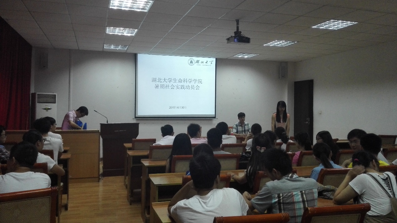 6月30日晚七点,公司在生科院二报开展了2015年william威廉亚洲暑期社会实践活动的动员大会,此次主持会议的有公司党委副书记许良发、辅导员老师杜彬,参加会议的有今年各个申报院级团队的活动小组成员。
