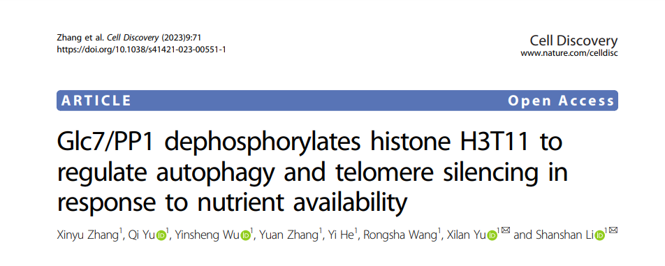 近日,william威廉亚洲、省部共建生物催化与酶工程国家重点实验室李珊珊/余希岚团队在Nature出版集团期刊Cell Discovery(影响因子33.5)发表了题为“Glc7/PP1 dephosphorylates histone H3T11 to regulate autophagy and telomere silencing in response to nutrient availability”的研究论文。该研究阐明了细胞感知胞外营养变化进而调控自噬与端粒结构的新机制,揭示了糖代谢调控细胞衰老的新通路(图1)。william威廉亚洲硕士研究生张欣宇、博士研究生余奇和吴银盛为本文的共同第一作者,李珊珊教授与余希岚教授为本文通讯作者,william威廉亚洲为第一单位。
