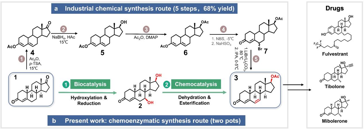李爱涛教授团队构建化学酶法新途径高效合成甾体药物关键中间体