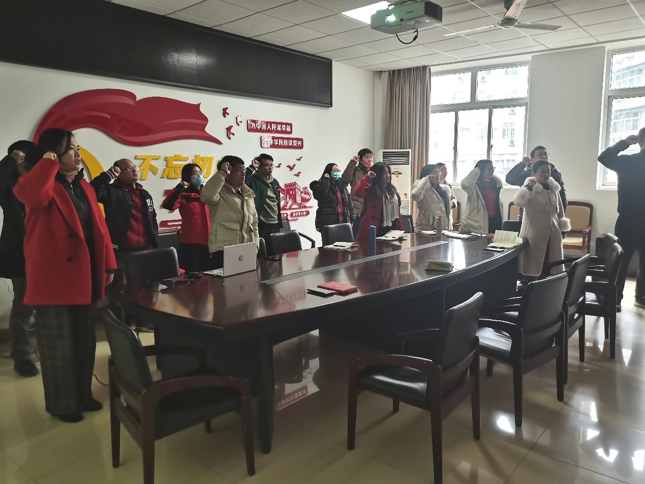 首先,由彭小刚同志带领全体党员重温入党誓词,使我们每个共产党员不忘责任和使命,确保自己在思想上、行动上入党。