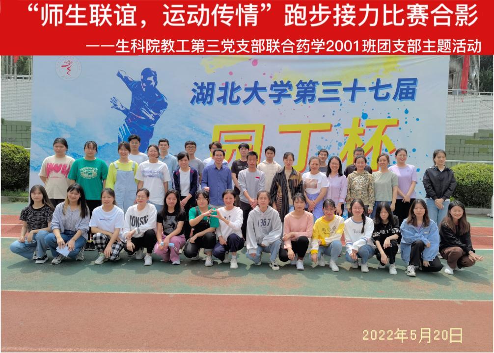 (通讯员:黄宁华)2022年5⽉20⽇下午,生科院教工第三党支部联合药学2001班团支部于二号体育场开展“师生联谊,运动传情”跑步接力比赛。在班主任蔡文涛老师指导下,班长王思晨进行活动策划,教工第三党支部及药学2001班团支部的成员参加接力比赛。此次接力比赛旨在激发同学们的锻炼热情,增加师生之间的感情交流,发扬团队协作精神,营造团结向上、积极进取的氛围。
