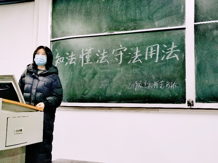 (通讯员:徐佩)为加强员工对法律知识的认识,增强其法律意识。让员工养成懂法、知法、守法的好习惯,有效地树立和维护公司良好的学风以及社会的稳定发展。2021年12月12日晚7点,2019级生师B班于教三206开展“知法 懂法 守法 用法”的主题班会团日活动,本次活动全体同学共同参与,由班长闻淑琪主持讲解。