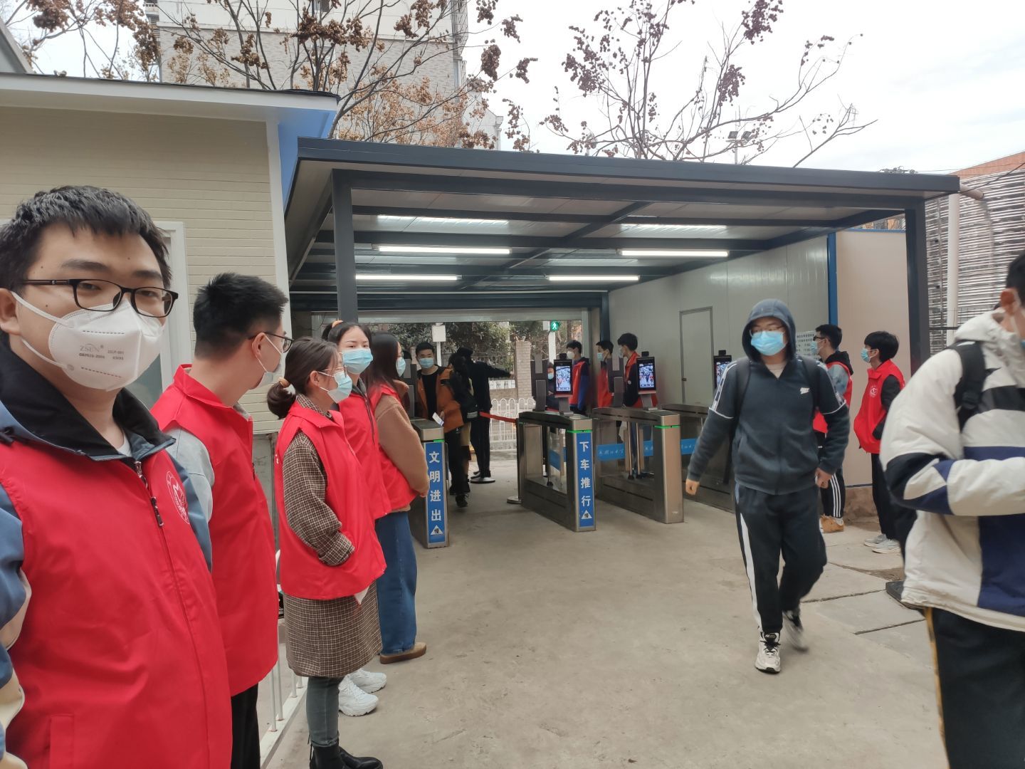 校园内,志愿者们勤劳的身影又出现在核酸检测点的现场,他们负责卡口值班、核酸检测人员现场的信息录入、维持现场秩序等工作。