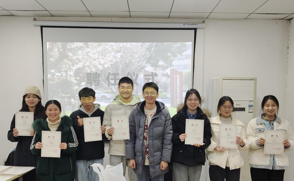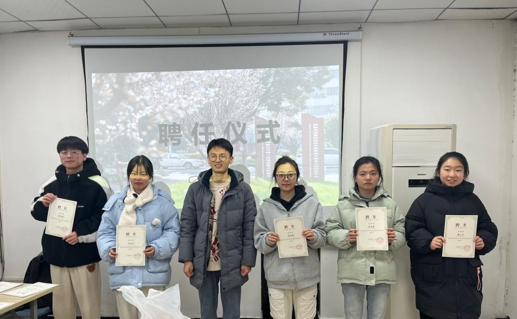 首先进行分团委聘任仪式,由付老师为21级同学颁发聘书并合影。