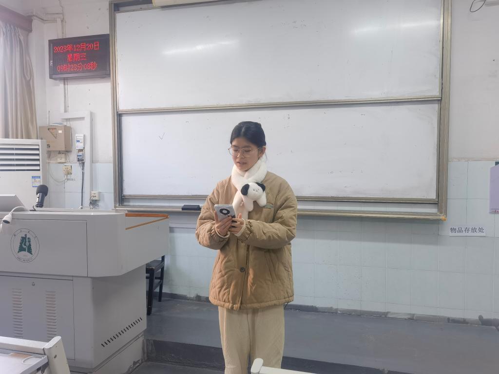2021级生信国重班宣讲人陈永博同学以“‘全国脱贫攻坚楷模’张桂梅:信仰为魂,奉献如歌”为主题,讲述了张桂梅先生将自己的一生奉献在党的教育事业上,用无私奉献精神和坚强毅力谱写出教育脱贫的红梅赞歌。