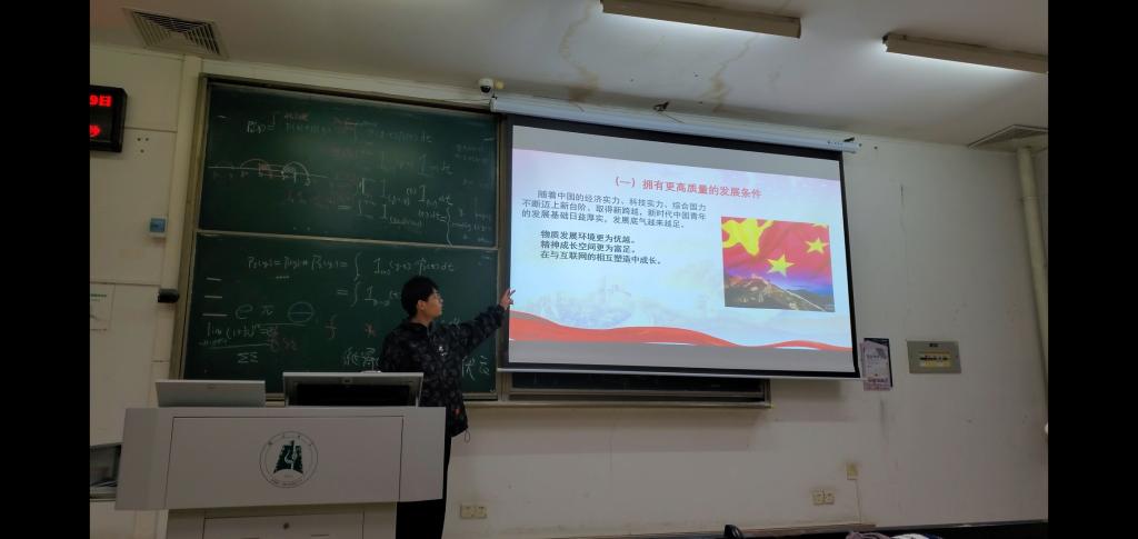 2021级生物科学试验班宣讲人叶振冠同学,从每一位同学自身出发,强调新时代需要新青年,新青年要有新使命,着重阐述了青年与国家发展之间的紧密联系,并号召大家“勇挑重担,堪当大任”,指出中国的未来属于青年,世界的未来也属于青年,希望每一个青年都要为了国家发展而努力。