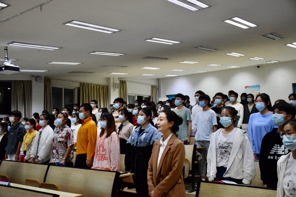 仪式开始,全体起立,奏唱国歌。随后,分党校班主任徐墨介绍培训班开班情况及授课计划,班长韩奥宣读培训班学员管理规定,本科2020级生科国重班纪思源作为学员代表发言。