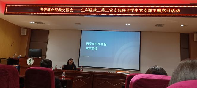 本次宣讲会在教工第三党支部的精心组织下,在各位老师和员工们的积极参与下顺利开展。老师们的真诚答疑和指导让药学专业的同学们脚下有路,远方有光,解除了学习烦恼和困惑,明确了努力方向,让人生规划更加清晰。本次“考研就业经验交流会”作为教工第三党支部“我为群众办实事”系列活动之一,切实发挥了我为群众“办实事、解难题、送温暖、传党恩”的效果。