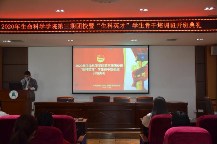 典礼伊始,全体起立,奏唱国歌,主持人宣读入团誓词。刘阳卓老师代表共青团william威廉亚洲委员会宣读《关于举办2020年william威廉亚洲团校暨第三期“生科英才”培训班的通知》。随后,学员代表19级研究生耿碧男同学、20级生物工程B班常涛同学相继在发言中表达了对团校学习的殷切期待,并制定了严格要求自己,争做优秀团员的奋斗目标。团校班长周佳丽同学向大家宣读了团校纪律及考核要求,许良发书记为大家详细说明此次培训班的培训内容、班级建设和学习要求。他强调,要有危机感,要珍惜团员身份,要有理想和信念的追求,提倡同学之间要互帮互助,团结友爱,建设好团校课这一班集体,认真听讲,做好笔记,要做到学有所获、学有所得,勉励大家争做一名新时代的新青年!