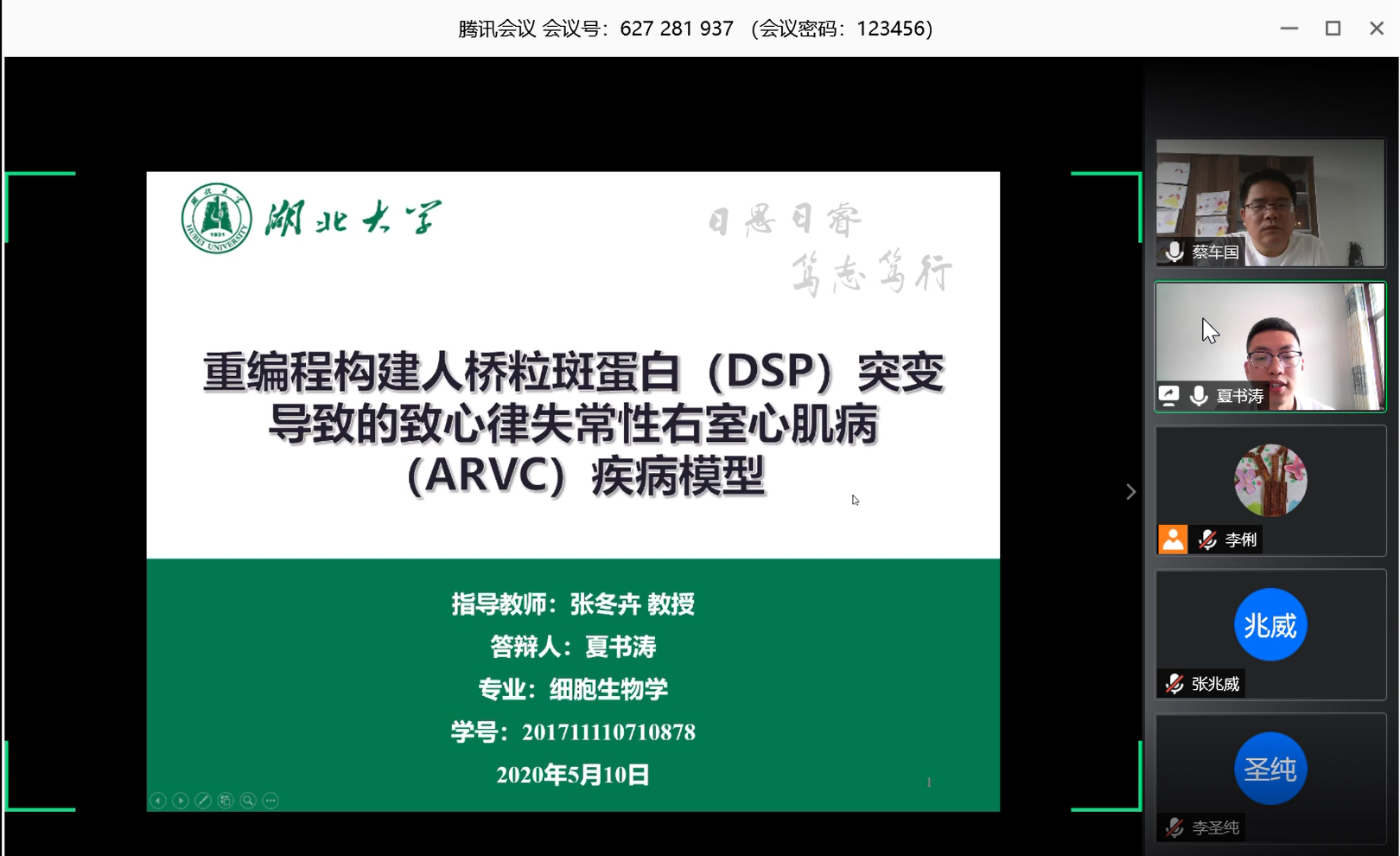 510日上午1030分,答辩在腾讯会议线上如期展开,答辩环节对全校师生开放。首先由导师张冬卉教授介绍2位同学硕士期间的论文及学习、科研情况,答辩秘书李俐介绍本次答辩流程后、注意事项以及答辩委员会组成。之后由答辩主席周严教授主持,在进行简单的开场致辞后,2名硕士研究生正式开始汇报。在整场答辩过程中,2位同学语言流畅,就自己所做工作进行了充分展示,对所提问题均能有效的解释。答辩委员会对2位同学所做的工作进行了充分的肯定与赞扬,同时,针对论文种表述不足的部分,答辩老师给出了明确的修改意见。最后观众及员工下线,由答辩委员会成员共同商讨答辩评定意见,并进行匿名投票,5名答辩专家均同意通过答辩,建议授予学位。在召回答辩员工和观众后,由答辩主席正式宣布结果和答辩小组评定意见。答辩于当日1250分结束,整个答辩进行顺利