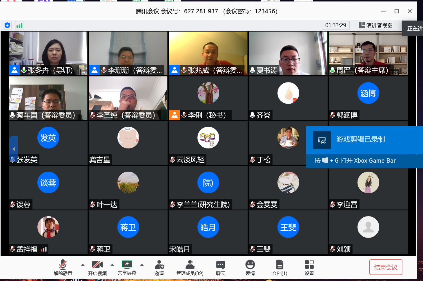 2位研究生的答辩资格、答辩委员会组成、答辩公告发布、答辩进行程序等均符合公司规定,答辩秘书均按照公司要求对视频答辩过程进行了录像、视频截图,组织答辩委员使用微信小程序“腾讯投票”对答辩人进行了匿名表决。经过严谨的安排和师生的密切配合,本次答辩圆满完成。