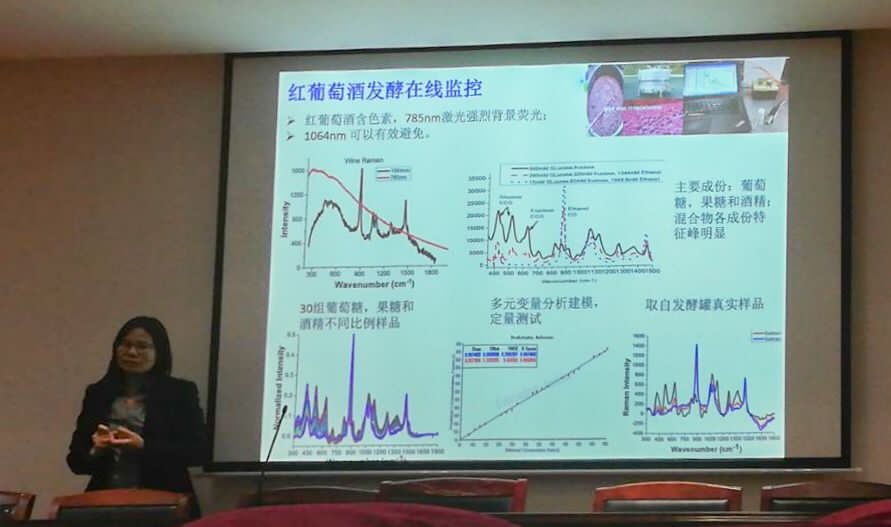 报告会上,博士阮银兰首先向大家介绍了澳大利亚阿德莱德大学著名的“IPAS”。随后,她详述了光纤的应用方向以及光纤在传感上具有快速,减少干扰,耐高温,耐腐蚀等优势。接着,她向大家展示了光纤制作的工艺流程,即通过挤压玻璃制作多种类型预制板,并通过缩小预制板来最后形成光纤。另外,她还向员工们展示了多种光纤的类型,特点和光纤在蛋白质检测,重金属检测上的应用。最后,她同大家详细地讲解了通过应用拉曼散射得到的天然产物检测内容,包括杏仁的苦涩度和硫熏陈皮的拉曼信号等。