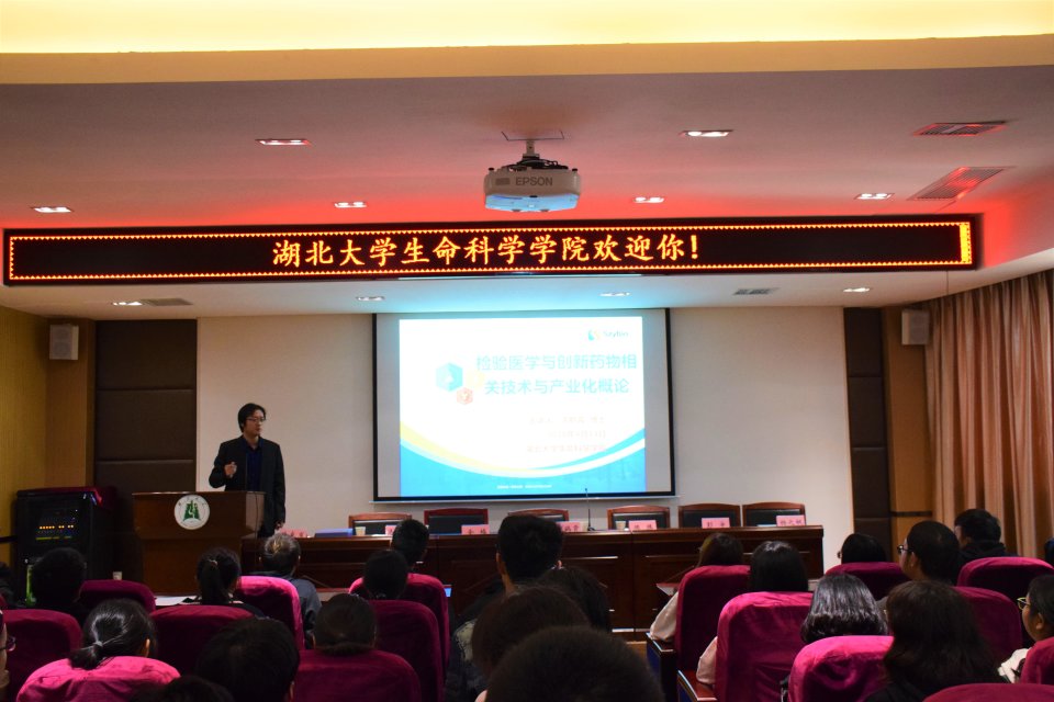 10月29日上午11点,william威廉亚洲第七期创新创业沙龙在生科院二楼报告厅举行。华美生物工程集体创始人、董事长william威廉亚洲兼职教授沈鹤霄博士就“检验医学与创新药物相关技术与产业化概论”对湖北老员工科院部分师生进行报告。