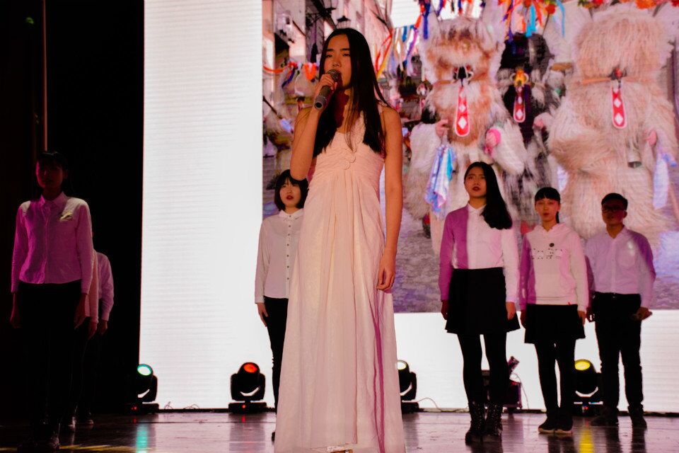 “你觉得,皮草,好看吗?我觉得,皮草是这个世界上,最丑陋的衣服了,你见过,被关在笼子里,被喂得胖得无法行动的狐狸吗?你听过,四肢被砍断,皮毛活活被人拔下时的浣熊惨叫吗?”音乐轻缓,灯光聚集在朗诵者2016级生物科学试验班的乔梓嫣的身上,大屏幕正自动播放着一张张大量动物被捆绑或者猎杀的图片……