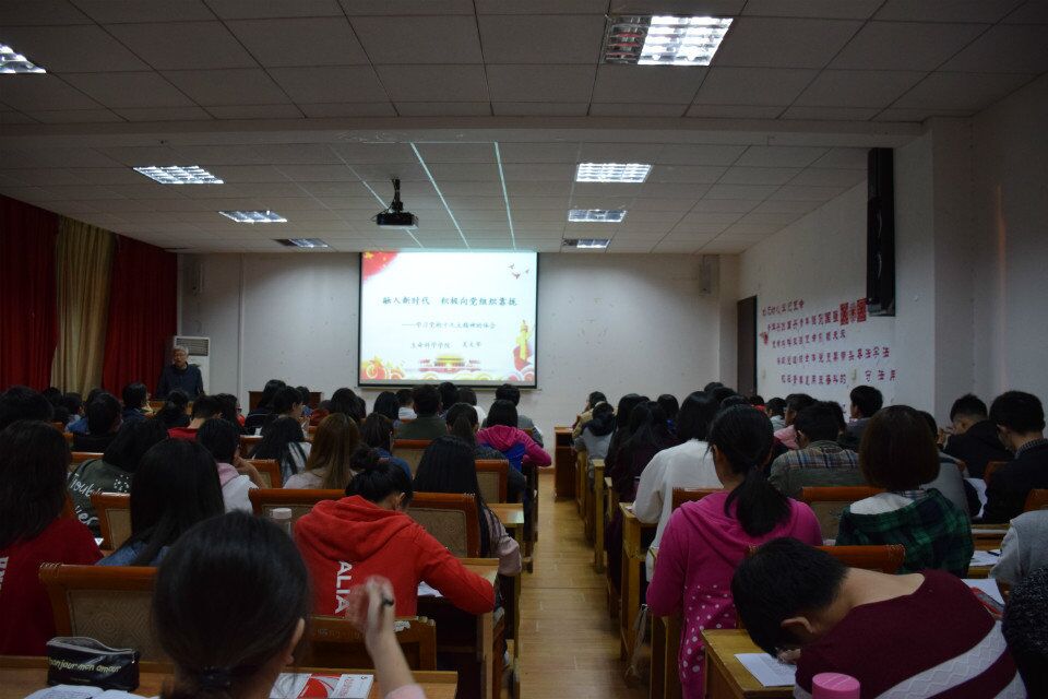 首先,吴文华向学员们讲述了当今21世纪的新时代,新征程,新思想,新矛盾和新作为。他介绍,处于新时代的中国如今在经济建设取得了重要成就,经济保持中高速增长,创新驱动发展战略大力实施,平均每年有1300多万人摆脱贫困;在全面从严治党方面成效卓著,巡视利剑作用彰显,坚持反腐败无禁区、全覆盖、零容忍;在新时代的引导下也向全面建成小康社会到基本实现现代化开始了新的征程。他告诉同学们,积极向党组织靠拢,需要加强理论学习、宣传,弘扬新思想,提高政治素养与觉悟,严于律己,践行社会主义核心价值观,还要遵守校纪校规,学好专业本领,投身于经济及生态建设。他说:“在新时代的背景下,我们应做出积极向党组织靠拢的新作为。一代人有一代人的使命,今天,我们比历史上任何时期都更接近,也更有信心和能力实现中华民族伟大复兴的目标。”