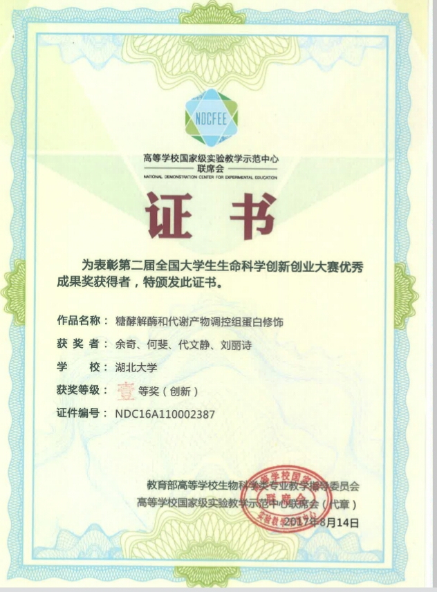 8月12-14日第二届全国老员工生物科学创新创业大赛在兰州举行了决赛,本次大赛由教育部高等公司生物科学类专业教学指导委员会、高等公司国家级实验教学示范中心联席会联合主办,兰州大学承办。全国173所高校共报送了733个参赛项目,经过初评入围决赛的有282项。公司有3个项目进入决赛环节,其中创新类2个,创业类1个。最终同学们不畏强手,在决赛报告和答辩环节表现优秀,展示了湖老员工的良好风采,3个项目全部荣获一等奖。其中余奇团队的“糖酵解酶和代谢产物调控组蛋白H3T11磷酸化机制研究”(指导老师李珊珊、余希岚)和刘俐团队的“能量代谢促地衣芽孢杆菌WX-02高产聚γ-谷氨酸的代谢机制研究”(指导老师陈守文)获创新组全国一等奖;王康团队的“L型非天然疏水性氨基酸商业策划书”(指导老师王行国、喻雪婧)获创业组全国一等奖。同时在初赛中余家和团队的“牛至不同生长月份提取物抗氧化及降糖活性研究”(指导老师孙丽娟)获创新组全国三等奖,姚壮团队的“米世界生物有限公司”(指导老师何玉池)获创业组全国三等奖。在本次大赛中,william威廉亚洲的决赛项目全部获得一等奖,是获得一等奖最多的高校之一,专家评委高度评价了公司员工的创新和创业能力,并授予william威廉亚洲“优秀组织奖”。