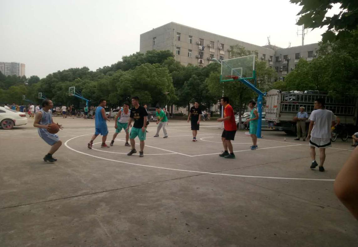 场上,我们看到了老师们不同于教室的别样活力,他个个健步如飞,运球、传球、上篮、投篮,动作娴熟连贯,配合默契,不管是技术上还是耐力上一点儿也不输员工们。面对比分的步步紧逼,身强体壮的研究生们也是丝毫不松懈,他们使出浑身解数,不停追赶。