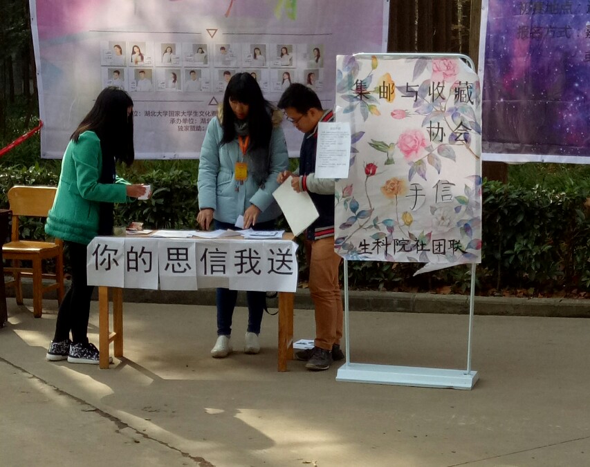 与到了此次的活动中来。据宣传人员透露,其中还有不少精美的邮票是同学们私下订制的。1128日,经过之前的宣传,活动宣传点也陆陆续续的收到了同学们的来信。协会组织人员迅速的将信件都派送了出去。