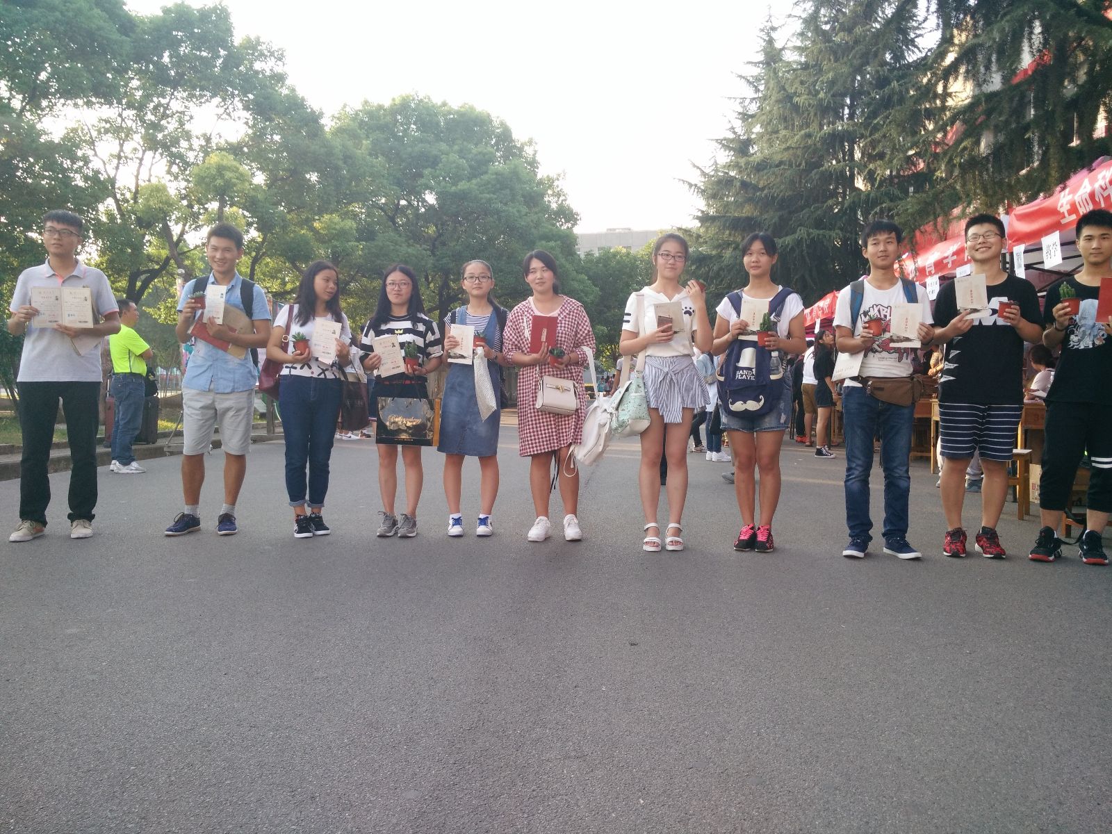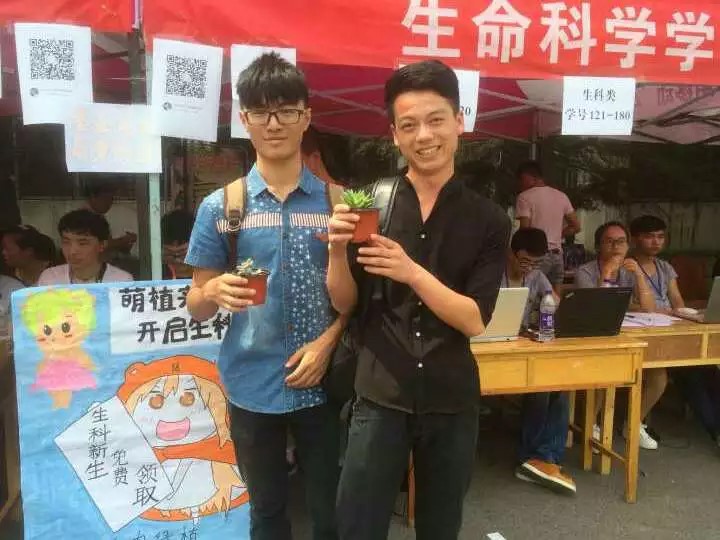 期间人手紧缺,院老师和书记还有社联成员一起发放绿植,看到每一个新生手里有一个盆栽后,一个领养到绿植的生科院新生略带炫耀地说:“我要把它发在我寝室的书桌上,四年之后一定会长得很好!”