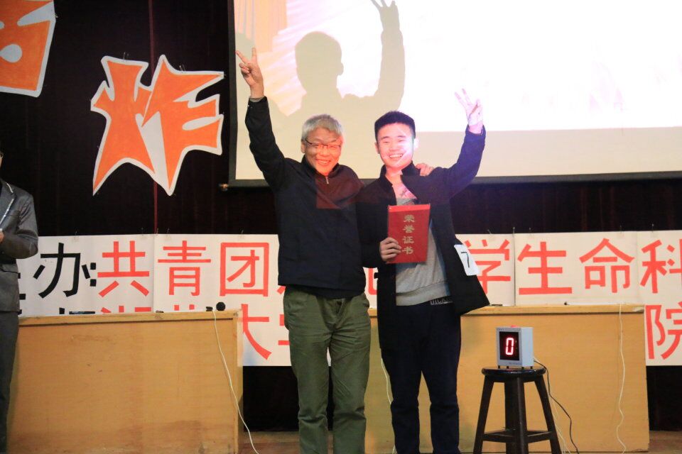 在此次活动前期阶段,各位参赛者经过激烈的笔试和复试,充分利用自己的知识锦囊来参与此次活动,最终有八位选手脱颖而出。在此次总决赛第一轮的抢答环节,八位选手蓄势待发,紧紧握着手中的抢答器,时刻注意着题板上的问题,如“哪一种食物吃多了会使皮肤变黑”等这些问题都与生活息息相关。在判断正误环节,不仅场上的同学绞尽脑汁,场下的同学更是先声夺人,在座的同学也意识到了原来自己多年以来的许多看法都是不科学的。最后环节,选手们需做一些与生化相关的趣味实验,现场的气氛更是活跃。如“大象牙膏”——只要加一定试剂,就可以持续不断地产生如象鼻般长的“牙膏”,着实令同学们大开眼界,惊叹不已,更让在场的同学对生化方面的知识有了更浓厚的兴趣。经过激烈的角逐,最终13级生物科学班王昊栗同学获一等奖,14级生物技术产业班的苗丽君获二等奖,14级生物试点班的米欢同学获三等奖,赵祥、魏一、等人获得了优秀奖。