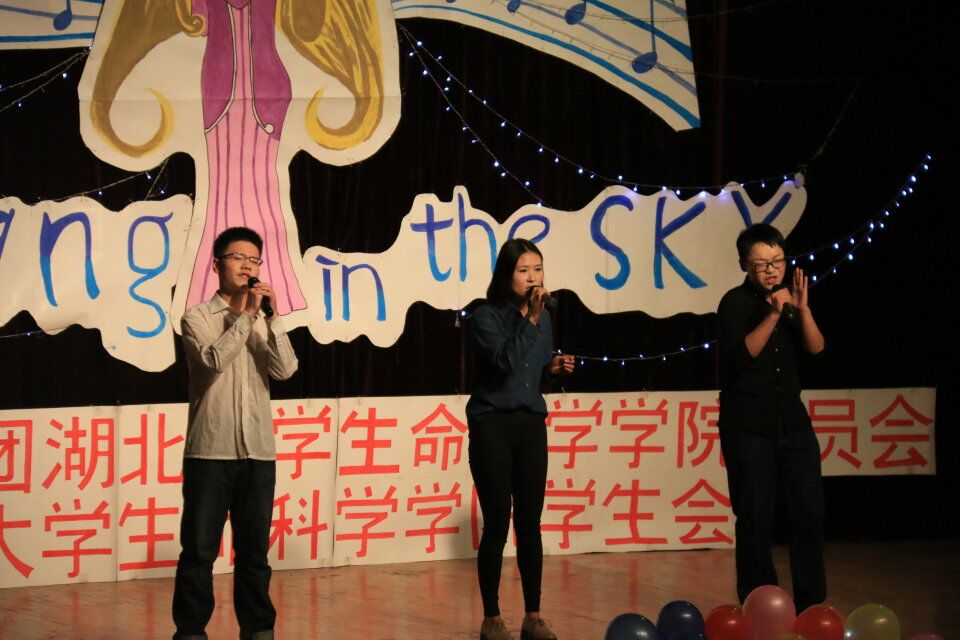 全体参赛成员热烈又充满活力的开场舞点燃了整个报告厅的气氛。在第一轮中,第一组的沈伟杰、李扬、陈毅聪合唱的《开到荼靡》让整个会场洋溢着流动的音符,现场的每个人都沉浸在美妙的歌声中。每一组选手与嘉宾配合默契,不一样的台风,不一样的歌曲,都让他们唱出了不一样的感觉。在互动环节中,台上参与活动的每位观众,解尽浑身招数让自己队得分——抢话筒、唱儿歌等等,而台下的观众也没有闲着,也在拼命开动脑筋帮助台上观众。气氛在游戏中更加热烈,就连台下观众也跃跃欲试。