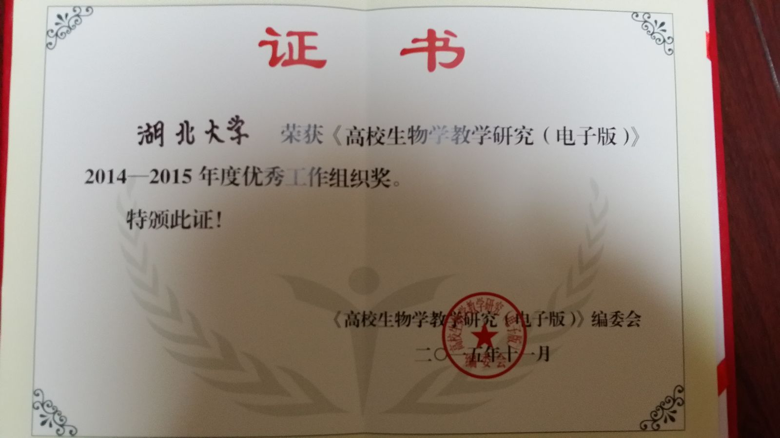 11月14-15日,在广州举行的高校生命科学课程教学系列报告会(2015)暨第十届高校生命科学课程报告论坛揭晓了2015年全国高校(生命科学类)微课教学比赛的结果,并举行了颁奖仪式。公司张海谋教授荣获一等奖。张海谋的微课内容是省级精品课程《分子生物学》中的一个知识点“蛋白质组学的研究内容”。此次全国微课比赛评出了一等奖5名,二等奖11名,三等奖14名。张海谋是湖北省高校唯一获一等奖的教师,其他几位一等奖获得者均来自清华大学、复旦大学等著名高校。另外在单项奖中,张海谋还荣获“教学风采奖”。