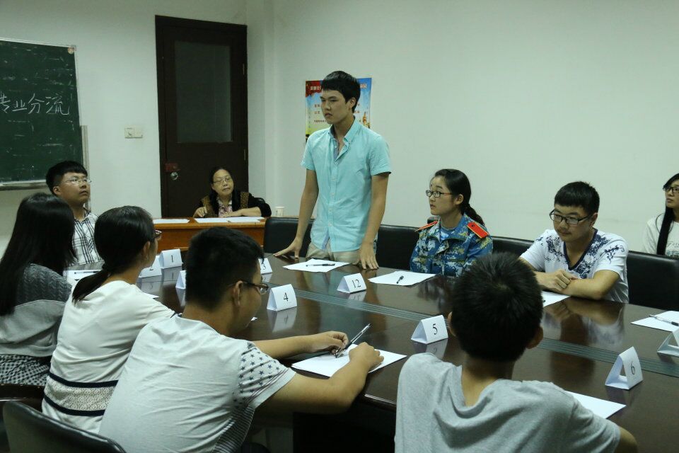 在18日晚的生物科学试验班选拔面试中,共有68名同学报名,大家被随机分为五个组。每组同学大约13-14人进行的是以“海难求生”为题的无领导小组讨论。首先,每一位同学从性格、爱好、加入专业的理由等方面介绍自己。随后,同学们就讨论课题进行严密条理的阐述。进入到自由辩论的环节,现场气氛到达高潮,每一位同学都从生存条件、现场实情等方面进行了激烈的辩论,同时给出反驳的理由,最终通过协商得出小组讨论结果,并选出一名代表进行了本小组的结论总结。