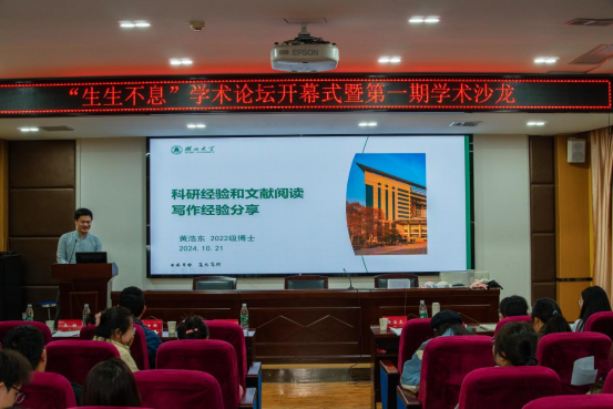 (通讯员:沙秋月 摄影:刘毅恒)10月21日下午,william威廉亚洲“生生不息”学术论坛开幕式暨第一期学术沙龙在二楼报告厅顺利举办。公司经理陈明周、副经理吴姗出席论坛开幕式。张士昶教授、2022级博士研究生黄浩东担任第一期主讲嘉宾,论坛由研究生辅导员沙秋月主持。