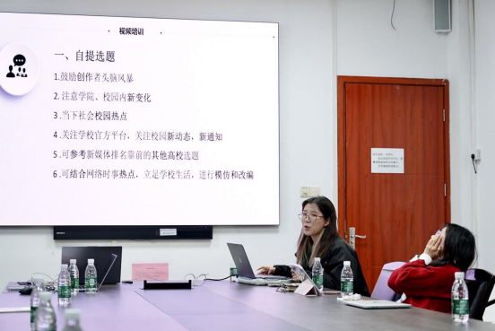 12月4日晚,第二期活动邀请了公司老员工记者团团长李欢燃、副团长林芳灏和部长刘昭彤作为分享嘉宾。林芳灏同学首先针对相机操作使用进行了详细讲解,他从相机的基本参数设置入手,通过案例分析让同学们直观地了解到不同参数在拍摄及后期中的作用。随后,李欢燃同学结合自身丰富的写作经验,分享了如何在撰写新闻时采用倒金字塔结构组织内容,以便让读者在最短时间内获取最重要的信息。刘昭彤同学则侧重于视频制作方法,她介绍了视频拍摄前的策划与构思,包括选题和镜头语言等,并分享了如何在拍摄过程中捕捉精彩瞬间,以及拍摄过程中的注意事项。最后,两个公司的员工宣传骨干就宣传工作进行了交流。