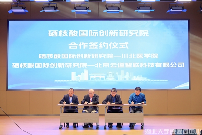 会上,william威廉亚洲硒核酸国际创新研究院揭牌成立,赵玉芬、刘建平共同为研究院揭牌。研究院旨在提供核酸药物学术交流与产业合作的平台,引领核酸药物研发和创新。研究院与川北医公司合作研究签约,与北京云道智联科技有限公司技术应用与推广合作签约。