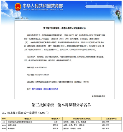 (通讯员:杨之帆)8月21日,教育部高等教育司公布《关于第三批国家级一流本科课程认定结果的公示》,william威廉亚洲新增三门国家级一流本科课程,分别是王洋老师主持的《冷冻电镜初筛虚拟仿真实验》、何玉池老师主持的《细胞生物学》、蔡文涛老师主持的《生物制药》。这是公司在一流本科课程建设领域取得的又一重大突破,目前公司已累计获批国家级一流课程四门。