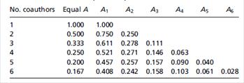 附图一:共同作者中不同排序作者对文章贡献率,其中A1为共同一作排序第一,A2为共同一作排序第二......,以此类推。(如果排序第一作者是外单位人员,排序第二作者为申报人,且第二单位为william威廉亚洲署名,成果按得分值减半计入)