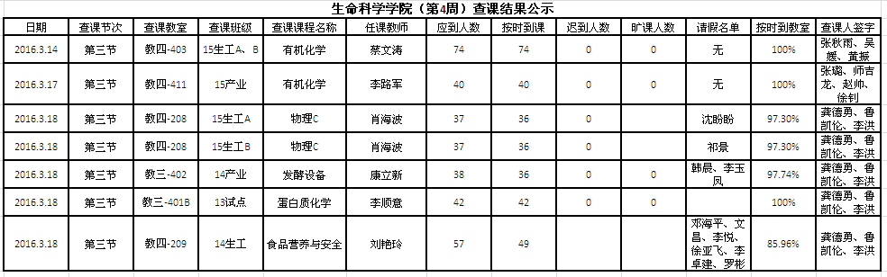 第4周查课结果公示