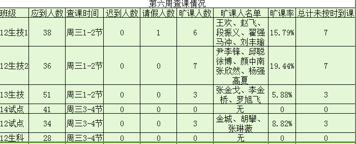 第六周查课情况公示