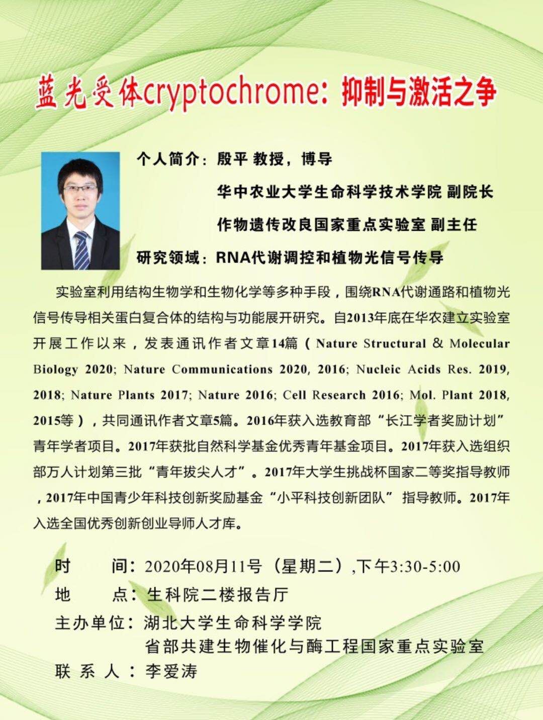 学术报告:蓝光受体cryptochrome:抑制与激活之争
