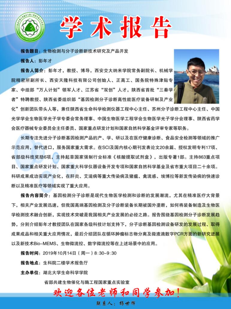 学术报告:生物检测与分子诊断新技术研究及产品开发