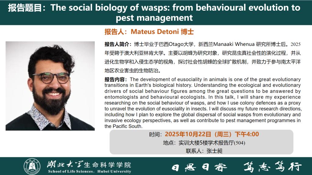 学术报告:The social biology of wasps: from behavioural evolution to pest management