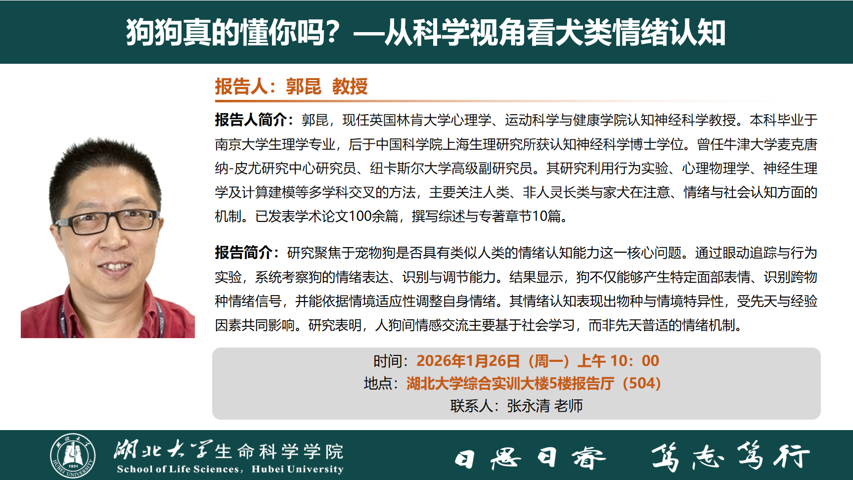 学术报告:狗狗真的懂你吗?—从科学视角看犬类情绪认知