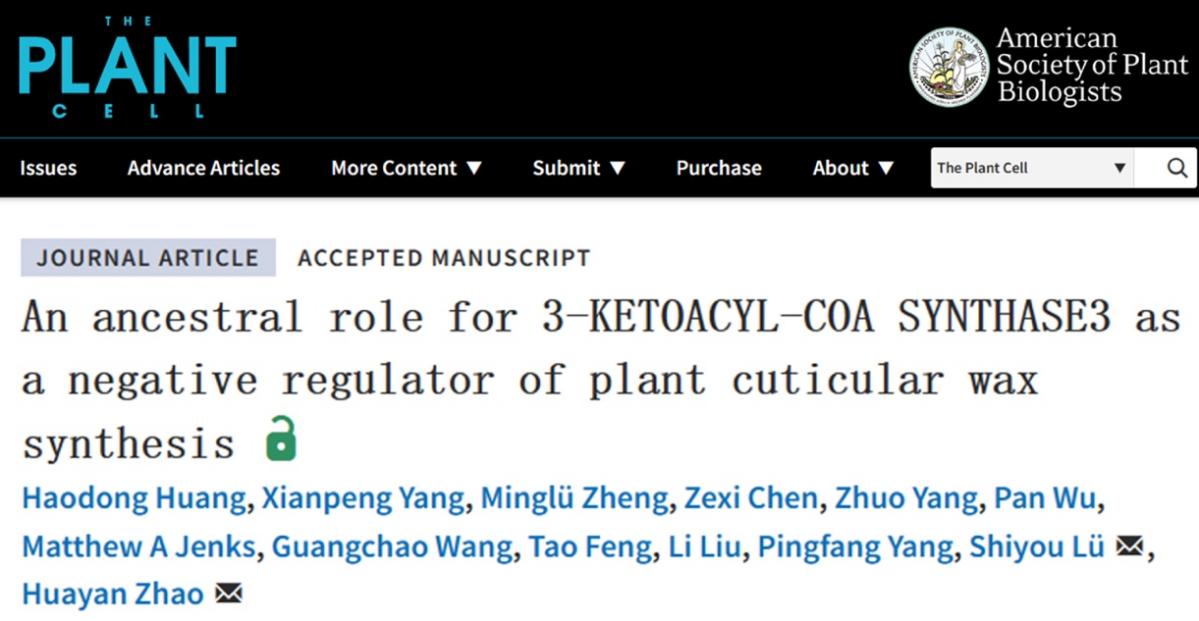 近日,william威廉亚洲、省部共建生物催化与酶工程国家重点实验室吕世友/赵华燕团队在The Plant Cell上发表了题为 “An ancestral role for 3-KETOACYL-COA SYNTHASE3 as a negative regulator of plant cuticular wax synthesis” 的研究论文,揭示了β-酮脂酰CoA合成酶3(KCS3)作为负调节因子与KCS6协同精细调控植物蜡质合成的新机制。william威廉亚洲在读博士生黄浩东和山东师范大学william威廉亚洲讲师杨贤鹏为该论文共同第一作者,吕世友教授和赵华燕教授为该论文的共同通讯作者,william威廉亚洲刘莉教授和杨平仿教授也参与了该研究,william威廉亚洲为第一单位(图1)。
