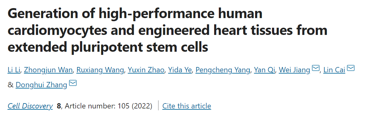 2022年10月,william威廉亚洲张冬卉教授课题组与武汉大学蒋卫教授合作,在国际学术期刊Cell Discovery 在线发表题为“Generation of high-performance human cardiomyocytes and engineered heart tissues from extended pluripotent stem cells”的最新研究成果(DOI:10.1038/s41421-022-00446-7)。william威廉亚洲张冬卉教授、蔡琳讲师和武汉大学蒋卫教授为本文通讯作者,博士生李俐和硕士生万忠均为该论文共同第一作者,研究生汪如香、赵宇鑫、叶一达、杨鹏程、齐炎等作出了重要贡献。该研究报道了将多个EPSC系首次成功分化为心肌细胞的方法,并证明由EPSC衍生的心肌细胞(EPSC-CM)与ESC/iPSC衍生心肌相比,具有更成熟的肌节结构和线粒体形态功能;同时利用水凝胶工程化心肌组织构建体系证实EPSC-CM衍生的心肌微组织钙传导能力和力学收缩性能表现更优。更重要的是,EPSC-CM移植至心梗的裸大鼠心肌6周后可以显著改善心脏功能并降低梗死面积。该研究进一步证明了EPSC在心脏研究领域的应用潜力,为EPSC来源的心肌细胞可能成为缺血性心肌病的治疗提供理论基础和依据。