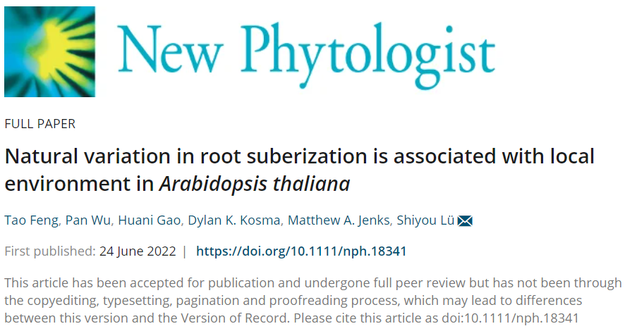 吕世友教授团队在木栓质与植物的环境适应性方面取得重要进展