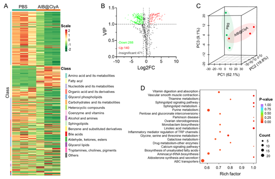 图2. 荷瘤小鼠经AIB@ClyA治疗后肿瘤细胞代谢组学分析。