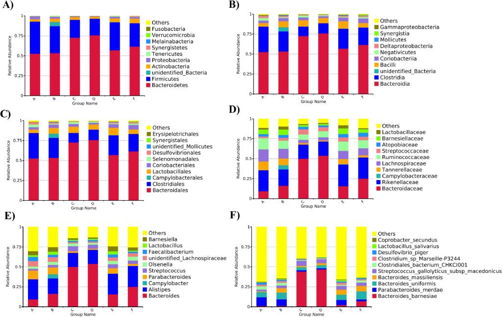 图2. 不同水平上肉鸡的肠道微生物群落结构