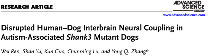 9月11日,william威廉亚洲张永清教授团队与中国科公司自动化所余山研究员、英国林肯大学郭昆教授以及北京师范大学卢春明教授合作,在国际顶尖学术期刊Advanced Science上发表了题为“Disrupted human–dog interbrain neural coupling in autism-associatedShank3mutant dogs”(Shank3突变犬的人-犬跨脑同步化缺陷)的研究论文(图1)。张永清教授为论文通讯作者,中国科公司遗传与发育生物学研究所博士研究生任炜为第一作者。