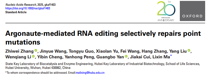 马立新教授团队在Argonaute介导的RNA编辑技术中取得了重要突破